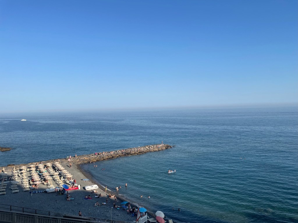 Jsme stále v Itálii a u Ligurského moře. Den trávíme u hotelového bazénu nebo procházkou k moři.