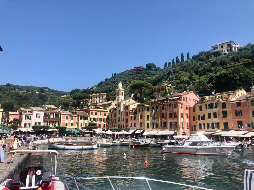 Jsme ještě v Rapallu a dnes jedeme na výlet lodí do Portofina. V Portofinu jsme navštívili hrad a jednu malou pláž. Taky jsme se prošli a dali jsme si zmrzlinu. Potom jsme jeli znovu lodí zpátky do Rapalla. Byl to hezký výlet.